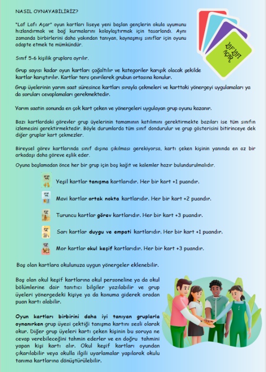 "Laf Lafı Açar" oryantasyon kartları ortaokul ve lise düzeyi öğrencilerin okula uyumunu kolaylaştırmak için tasarlandı.